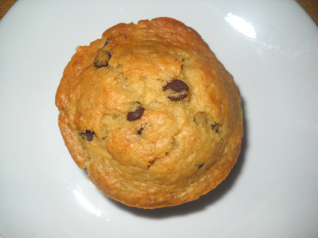 Preheat oven to 350 degrees. In a large bowl sift together flour, baking powder, and baking soda. Mix in brown sugar. Add wet ingredients to the dry ingredients and mix well, but not too much... over-mixing makes muffins tough. Fold in chocolate chips. Spray muffins tins with cooking spray. Spoon batter into muffin cups, about 2/3 full. Bake 25 minutes, until tops are golden brown